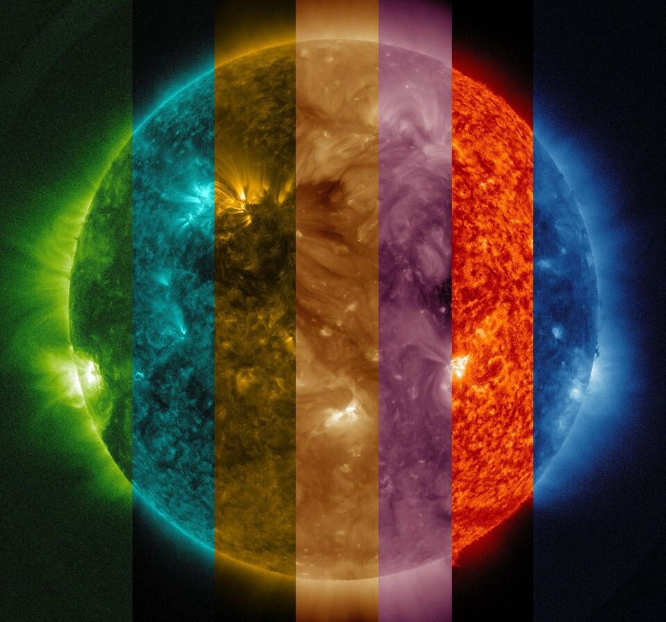 Определение цвета Солнца достаточно интересный и запутанный вопрос. Ещё Ньютоном было открыто, что белый свет является смесью света разных цветов и именно белым Солнце видят космонавты на орбите, так что в свете Солнца присутствуют все возможные цвета. При этом свет разных цветов в Солнечном излучении имеет разную интенсивность и наиболее интенсивным является зелёный свет с длиной волны около 500 нм (граница между зелёным и голубым). Однако, разница в интенсивностях разных цветов столь незначительна, что увидеть её невооружённым глазом не получится, поэтому можно говорить, что Солнце белое. Но почему же мы обычно видим Солнце жёлтым, а на закате так и вообще красным? Дело здесь во влиянии атмосферы, коротковолновые фотоны (синий, голубой, фиолетовый цвета) хорошо рассеиваются в атмосфере, а длинноволновые (красный, оранжевый, жёлтый), наоборот, хорошо проходят сквозь атмосферу. Чем ниже Солнце над горизонтом, тем больший путь через атмосферу приходится преодолевать солнечному свету прежде, чем мы его увидим, и тем меньше в нём содержание коротковолновых фотонов, а следовательно, Солнце приобретает жёлтый, оранжевый и красный оттенки. Когда Солнце высоко в небе, мы получаем от него больше всего жёлтых фотонов, а когда оно находится у самого горизонта, больше всего красных. Поэтому то каким человек видит Солнце зависит от времени года, широты, времени суток и уровня загрязнения атмосферы. Большую часть дня мы видим Солнце именно жёлтым, поэтому и принято называть его таковым, то что оно белое в целом широко известный факт, а поскольку в обыденной жизни цвет Солнца не столь важен, то на этом просто не акцентируют внимание.Определение цвета Солнца достаточно интересный и запутанный вопрос. Ещё Ньютоном было открыто, что белый свет является смесью света разных цветов и именно белым Солнце видят космонавты на орбите, так что в свете Солнца присутствуют все возможные цвета. При этом свет разных цветов в Солнечном излучении имеет разную интенсивность и наиболее интенсивным является зелёный свет с длиной волны около 500 нм (граница между зелёным и голубым). Однако, разница в интенсивностях разных цветов столь незначительна, что увидеть её невооружённым глазом не получится, поэтому можно говорить, что Солнце белое. Но почему же мы обычно видим Солнце жёлтым, а на закате так и вообще красным? Дело здесь во влиянии атмосферы, коротковолновые фотоны (синий, голубой, фиолетовый цвета) хорошо рассеиваются в атмосфере, а длинноволновые (красный, оранжевый, жёлтый), наоборот, хорошо проходят сквозь атмосферу. Чем ниже Солнце над горизонтом, тем больший путь через атмосферу приходится преодолевать солнечному свету прежде, чем мы его увидим, и тем меньше в нём содержание коротковолновых фотонов, а следовательно, Солнце приобретает жёлтый, оранжевый и красный оттенки. Когда Солнце высоко в небе, мы получаем от него больше всего жёлтых фотонов, а когда оно находится у самого горизонта, больше всего красных. Поэтому то каким человек видит Солнце зависит от времени года, широты, времени суток и уровня загрязнения атмосферы. Большую часть дня мы видим Солнце именно жёлтым, поэтому и принято называть его таковым, то что оно белое в целом широко известный факт, а поскольку в обыденной жизни цвет Солнца не столь важен, то на этом просто не акцентируют вним
