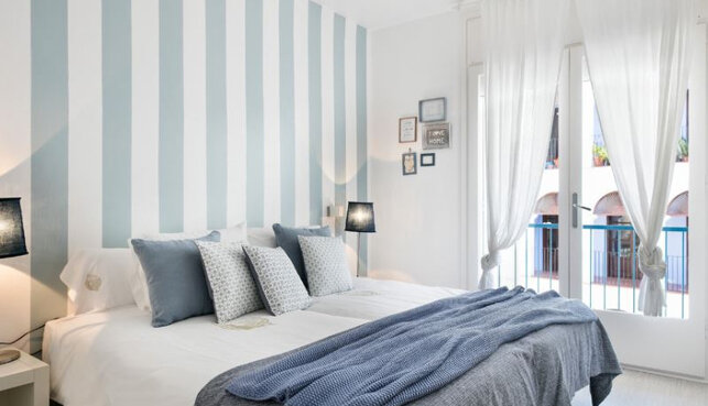 - Вертикальные полосы в оформлении стен. Для этого используются широкие полосы неконтрастных оттенков, хотя и яркие тона также подойдут, но тогда желательно применять их только на одной из стен, чтобы не возникало диссонанса.