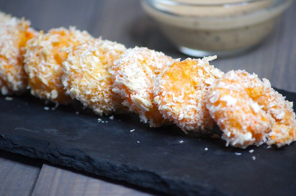 Здравствуйте, дорогие читатели! Не часто готовлю такую закуску, цена на королевские креветки "кусается", но если вижу хорошую скидку на них, беру пару упаковок. Закуска обалденная, к любому напитку будет хороша. Готовить очень просто, главное, чтобы были все необходимые продукты под рукой. Кстати, таким же способом готовлю филе рыбы или курицы, получается очень вкусно. Креветки можно разморозить при комнатной температуре или в холодной воде. Я заливаю крутым кипятком. Затем чищу креветки от панциря, хвостики оставляю, но если они вас смущают, удалите. Важно удалить кишечник, это тонкая полоска на спинке. Сделайте надрез острым ножом или подденьте пальцем и потяните к хвостику, промойте. В рисовую муку всыпала сладкую копченую паприку, имбирь и соль, перемешала. Мучную смесь со специями всыпала в пищевой пакет, выложила креветки, закрыла пакет и встряхнула, таким образом все креветки обвалялись в специях. В видео подробно показано, как я готовлю эту вкуснейшую закуску. Яйцо вбила в мис