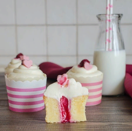 Начиняем готовые и уже остывшие кексы вишневой начинкой.