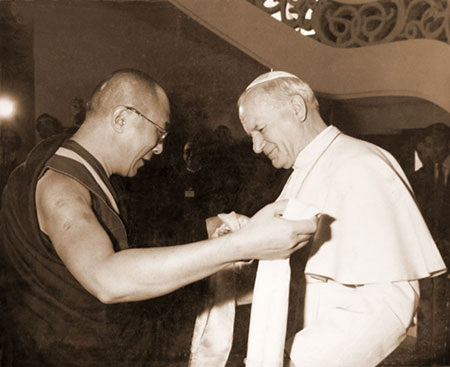 В наши дни расширяется основанный на взаимном уважении диалог между буддийскими мастерами и лидерами других религий. Далай-лама, к примеру, часто встречается с Папой Римским. В октябре 1986 года Папа пригласил лидеров всех мировых религий на большую конференцию в итальянский город Ассизи. Присутствовало около ста пятидесяти представителей различных конфессий. Далай-лама сидел рядом с Папой и удостоился чести первым выступить с речью. В ходе конференции духовные лидеры обсуждали общие для всех религий темы, такие как нравственность, любовь и сострадание. Узнавшие об этой конференции люди были очень воодушевлены сотрудничеством и согласием религиозных лидеров, их взаимным уважением друг к другу.