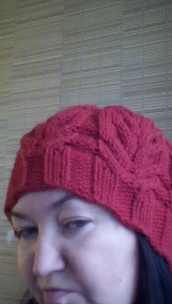 Шапочка связана на круговых спицах номер 5. В конце вязания, когда петель оставалось немного я пользовалась чулочными спицами.