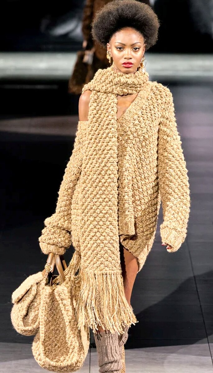 Внимание привлекает дизайнерский дом Dolce & Gabbana с их массивным, объемным и фактурным трикотажем, смешанным с деликатной одеждой и обувью.