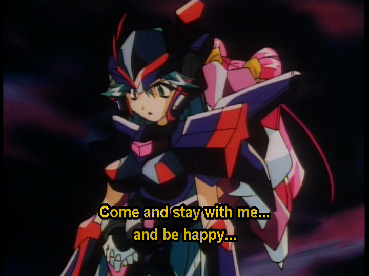 Позже девочка вырастает и узнается, что она хранительница земли и может управлять супер\гипер\мега мехом\броней. Как раз таки ради этой брони на землю и прилетает космический корабль злодеев. Позже она переманивает на свою сторону девушку(изначально злодюку), скорее всего это ее сестра.