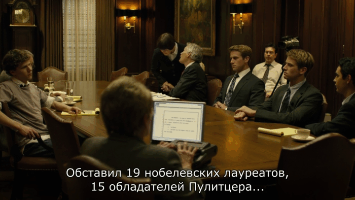 В «Социальной сети» 2010 года есть коротенький диалог во время слушаний: