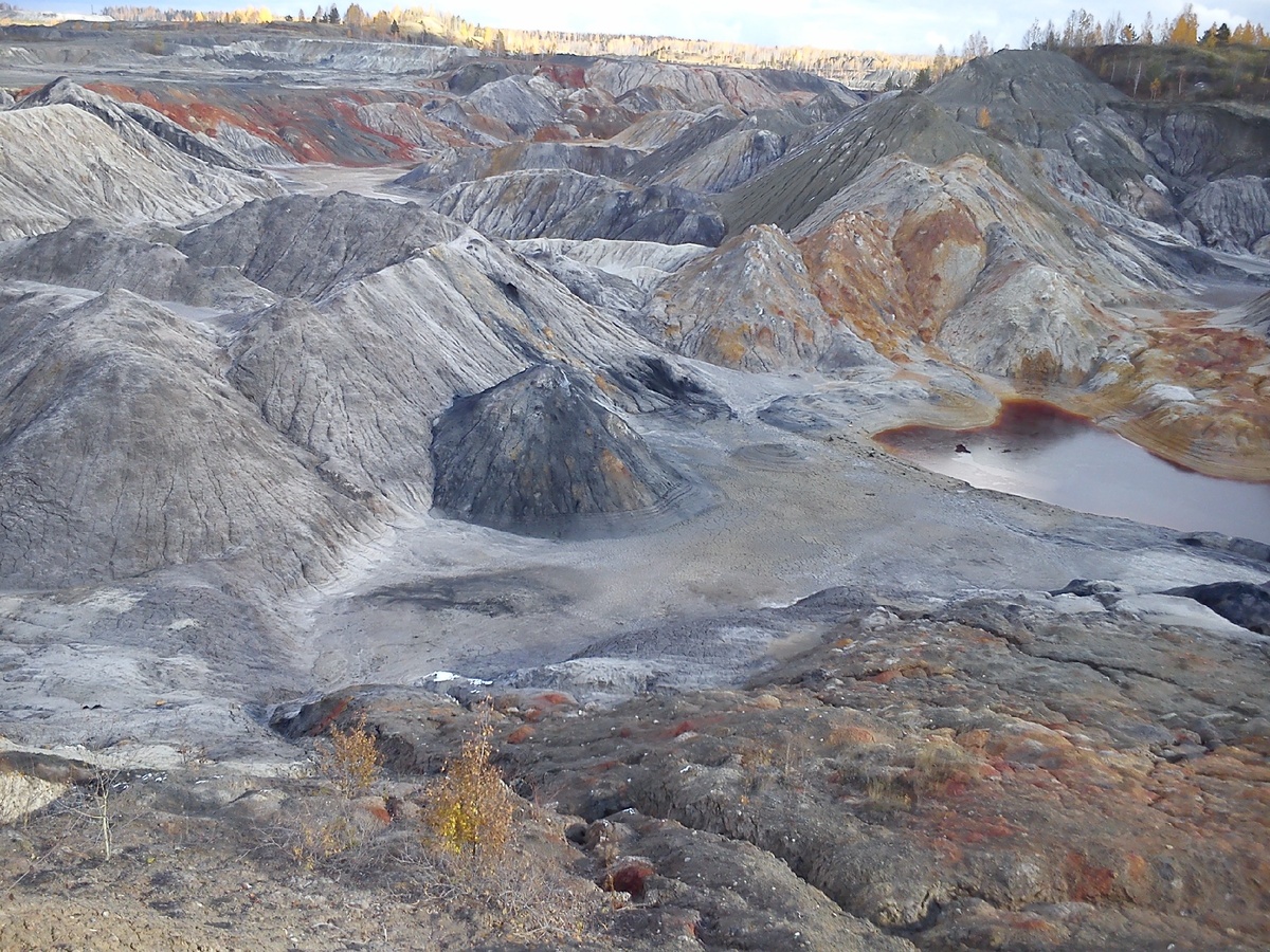 Марсианский пейзаж под Богдановичем, Уральский Марс, инопланетные пейзажи под Богдановичем - всё это названия одного из самых необычных мест Среднего Урала. Официально же оно называется Полдневским участком Троицко-Байноского месторождения огнеупорных глин. Площадь его около 75 кв. м. Породу, добывающую на участке применяли для изготовления огнеупорных кирпичей.
