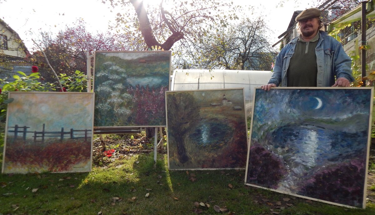 В тетраптихе "Поток времени"- "Утро", "День", "Вечер" и "Ночь" в экспрессивной манере показано как быстро протекают сутки, и что в плане пейзажа меняется и неуловимо переходит утро в день, вечер в ночь.