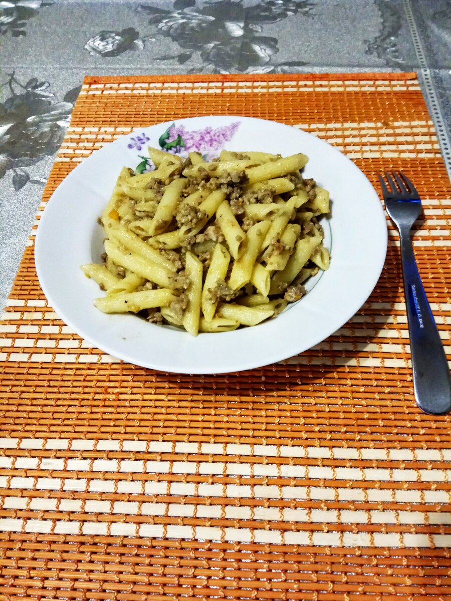 9. В отдельной кастрюле отвариваем необходимое количество макарон в соответствии с инструкцией на упаковке. (Я стараюсь брать макароны – перья, к рифленой поверхности которых, лучше пристают кусочки фарша). Готовые макароны откидываем на дуршлаг, после того как отвар стечет выкладываем в кастрюлю.