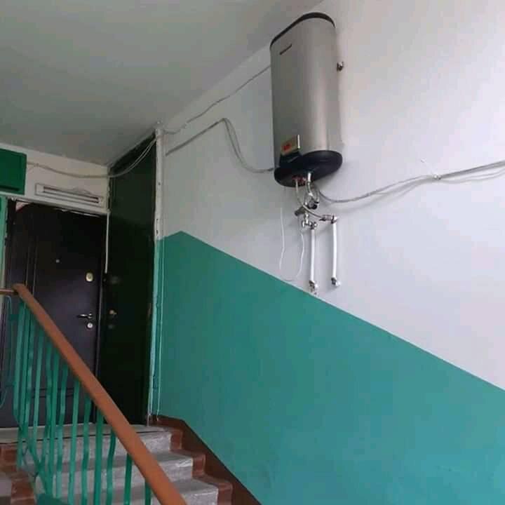 Видимо хозяева так сильно хотели поставить в своей квартире колонку, что решили немного выйти за край собственной жилплощади. А заодно продемонстрировать чудеса собственной изобретательности.