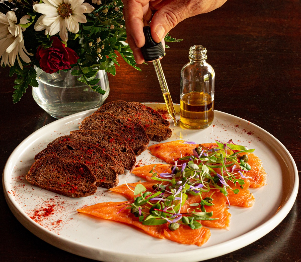 Для придания пикантного вкуса карпаччо подают с черри, руколлой или пармезаном.