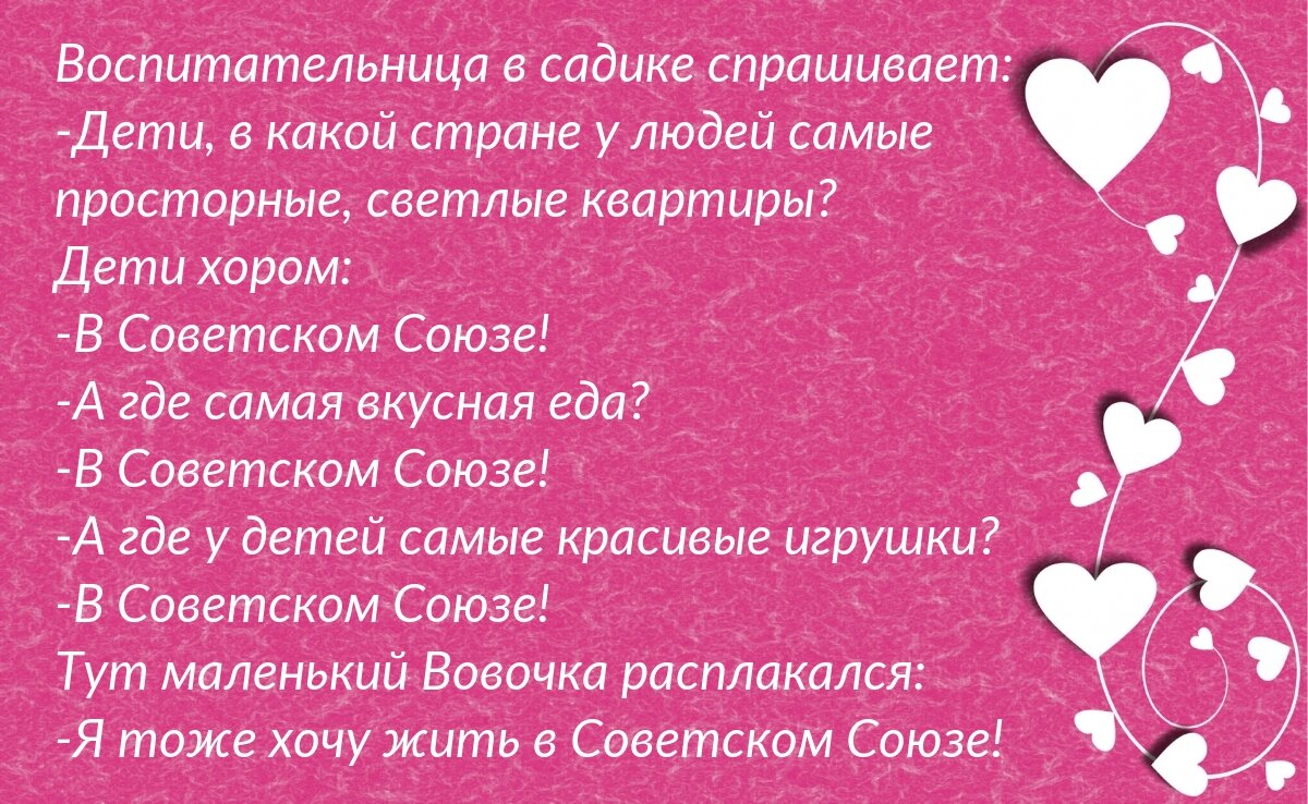 Помните этот старый анекдот? Смотрю с детьми старые фильмы и меня не покидает ощущение, что как бы да - показывали нам Советский Союз. Но жили мы где-то... в несколько другой стране... Вот, например, "Приключения Электроника". Сцена, где "Не надо "и"". Где они вообще занимаются? Что это за огромный зал в обычной школе? А урок рисования? Мы прям завидовали этой творческой атмосфере, царящей в студии, где можно запросто сидеть на ступеньках. И вздыхали: "Ну это в Москве, да..." А девочка-балерина в "Петрове и Васечкине"? Нет, всё остальное было - шахматные доски, мячи, скакалки. Даже бассейны в некоторых лагерях. Но зал, оборудованный для занятий балетом? В лагере? Нуу, может быть, один на всю страну? А крутейшая эстафета в фильме "Точка, точка, запятая"? В несколько этапов, со специальными палатками для сборки радиоприёмников? Вам кто-то такие устраивал? Нам вот как-то нет. Только в "Чучеле", наверное, ничего не приукрасили. Вот там да, узнавалось всё в полной мере - и город примерно