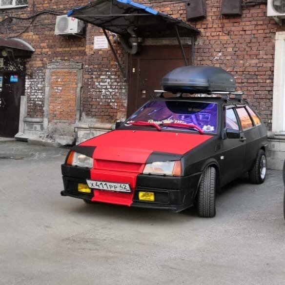 Последнее место занял пепелац ВАЗ 2109. Грозная морда, яркий цвет капота, фиолетовый тонер и багажник, придает этой девятке небывалый вид дачника, за то самый модный на деревне.