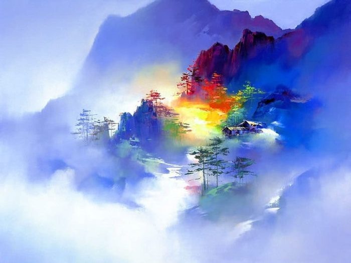 Hong Leung для своих пейзажей использует совершенно невероятные сочетания цветов, а пейзажи не теряют своей естественности. Нет ощущения какой-то надуманности, нереальности и фантастичности.