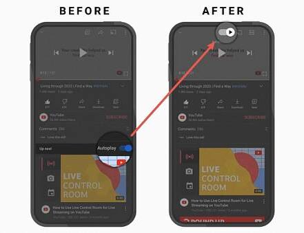 Кнопка «Автовоспроизведение» перемещается из-под видео в верхнюю часть. Туда же отправилась клавиша активации субтитров. Войти в полноэкранный режим можно, проведя пальцем вверх по воспроизводимому видео. Это намного быстрее, чем искать соответствующую кнопку. Для выхода из полноэкранного режима к стандартному окну проведите пальцем вниз.Нажатие на отметку времени теперь будет переключать между