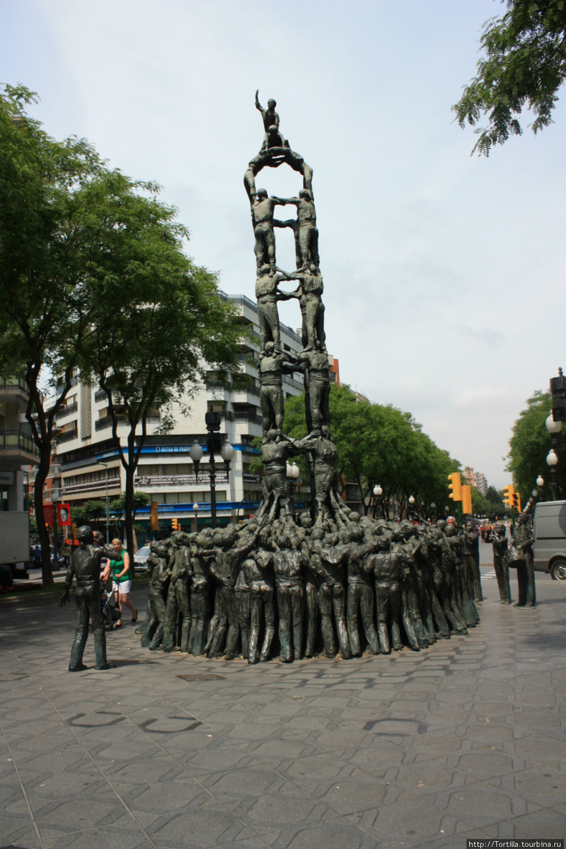 Приехав, с автовокзала отправилась на Рамблу. А там, оказывается рынок. Как я поняла, рынок – кочующий, т.е. в определенный день недели – в своем городке. В четверг – день Таррагоны. Но мне рынок не мешал и я пошла искать свои «метки» в путеводителе.Для начала – памятник кастельос, говорят каталонцы обожают поразвлечься на праздниках возведением довольно-таки высоких живых пирамид из «человеков». Рядом – милый «зоологический» фонтанчик.