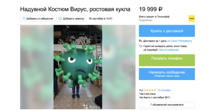 Увидела новость, что на Авито появился костюм «Короновирус» на Хэллоуин. Прошерстила все Авито, но ничего не нашла 🤷🏻♀️