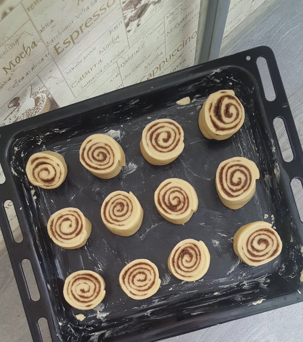 Готовые синнабоны не должны поджариться или покрыться корочкой. Это очень нежные булочки, лёгкой румяности достаточно. Немного остывшие булочки покрываем помадкой.