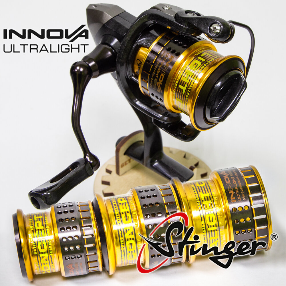 Stinger Innova Ultralight - относительно бюджетная безынерционная катушка для ультралайтовой ловли. Особенностью конструкции является сверхмалая масса, которая достигается за счет применения углепластика высокой модульности для литья основания и роторной части. Материал, кроме малого веса, отличается повышенной стойкостью к механическим и динамическим нагрузкам.