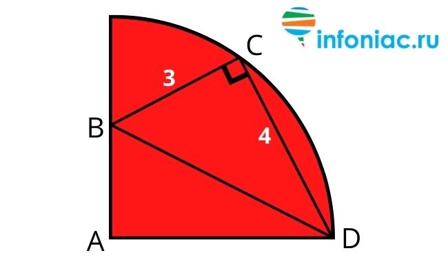 Перед вами рисунок, на котором вы видите прямоугольный треугольник, вписанный в четверть круга.