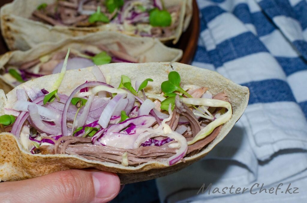 С таким мясом можно делать самые разнообразные бутерброды, гамбургеры (вместо обычной котлеты), шаурму, можно положить в питу, добавить в неё немного овощей и свежего лука. Можно приготовить к мясу любой гарнир, макароны или рис.