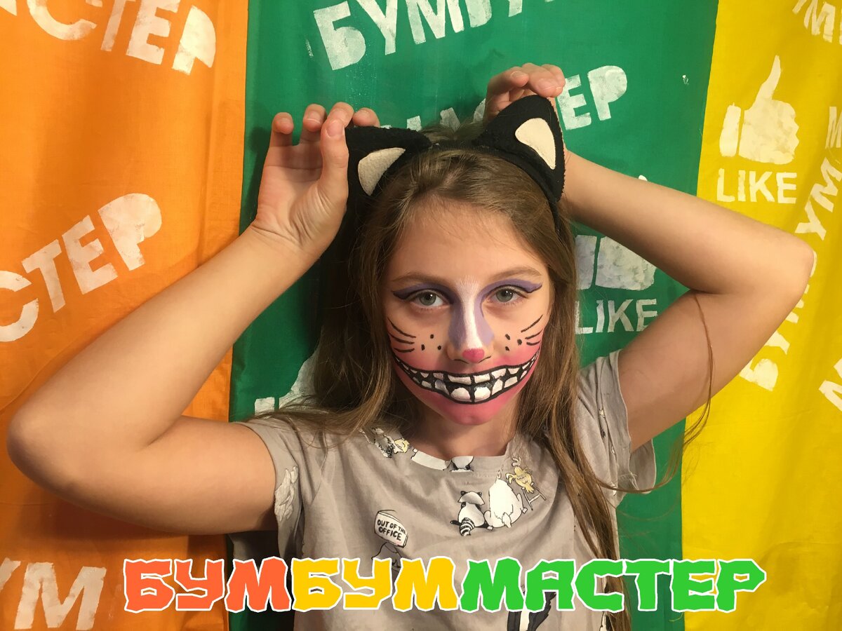 Необычный аквагрим к Хэллоуину "Чеширский кот". Вроде бы и нестрашно, но почему-то при виде такой мордочки мурашки по коже бегут. А вы любите делать аквагрим?