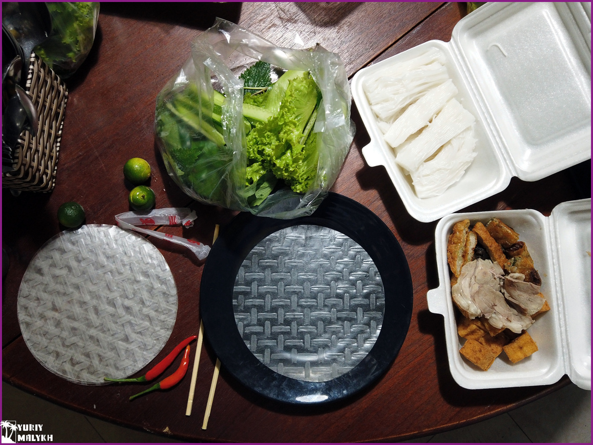 По большому счету, с начинками я и без вьетнамки бы справился, потому что класть надо было абсолютно все, что привезли. А вот с использованием бумаги и её отмачиванием не разобрался бы.