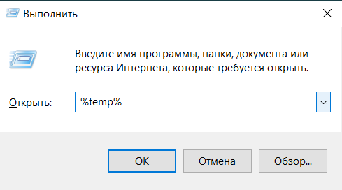 Далее совершаем те же действия, только на этот раз в окне "Выполнить" мы пишем "temp", на этот раз без процентов и удаляем находящиеся в папке файлы.