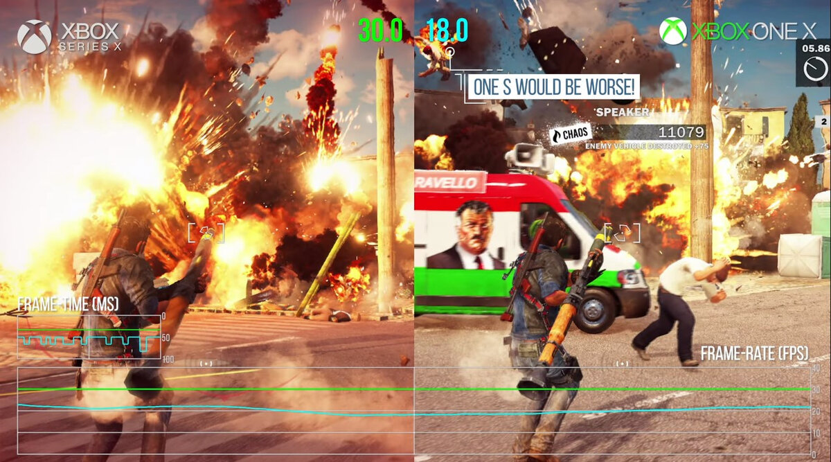 Результаты оказались впечатляющими. Just Cause 3, проседающая на Xbox One X до 10 FPS, показала стабильные 30 FPS.