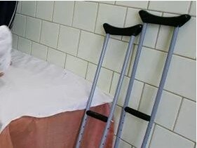- расположите костыль у грудной клетки так, чтобы его наконечник находился в 15-20 см от мыска стопы (расстояние зависит от ширины бедер пациента);