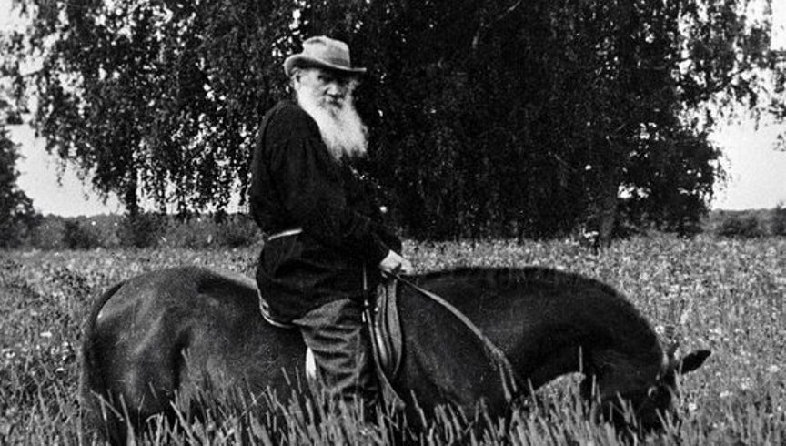 Л. Толстой (сидит и отрицает искусство, театры, кинематографы и прочее).