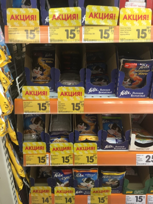 Берем больше вкусняшек для своего любимого котика, ведь на суп Felix с говядиной и курицей скидка 21%. На сухой корм Dreamies тоже скидка.