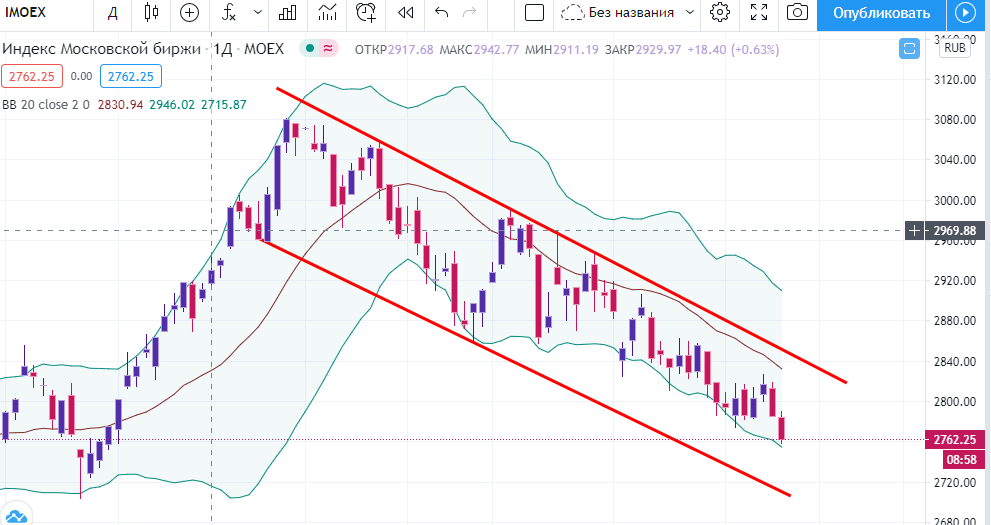 Индекс Московской бирже все еще торгуется в своем нисходящем канале, на графике тренд указан красным. Причин этому много.