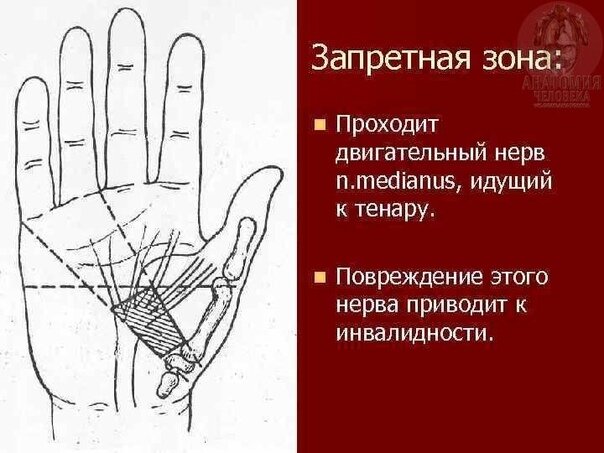 « Запретная зона » кисти, ее границы, анатомическое обоснование.