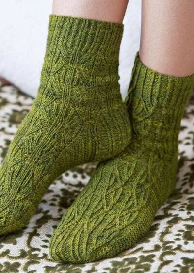 Замечание: носки размера L могут быть выполнены спицами № 2.5.