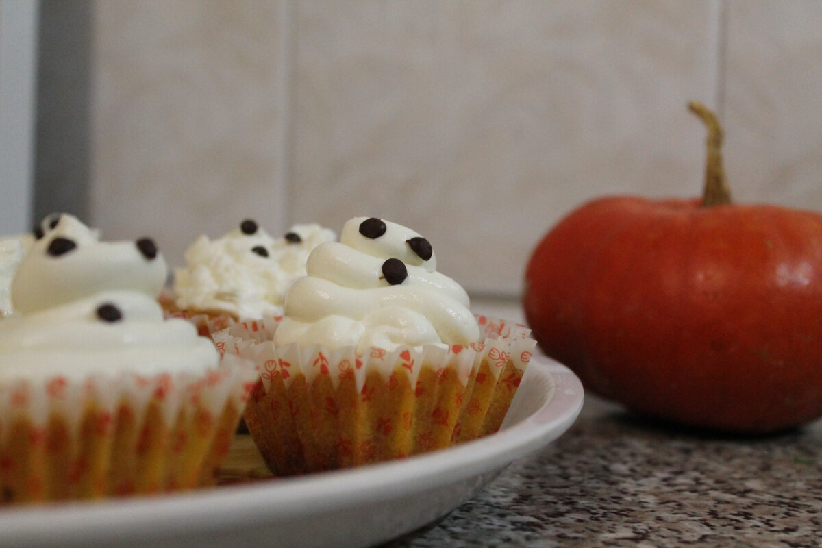 Отличная выпечка для Хэллоуина - кексы "Привидения"! Эти тыквенные кексы с апельсином получаются очень вкусными, мякиш сочный, мягкий, с красивым оранжевым цветом и ярким апельсиновым ароматом. Сырный крем и шоколадные дропсы легко превращаются в "привидения", которые не только украшают кексы, но и делают их вкус идеальным!