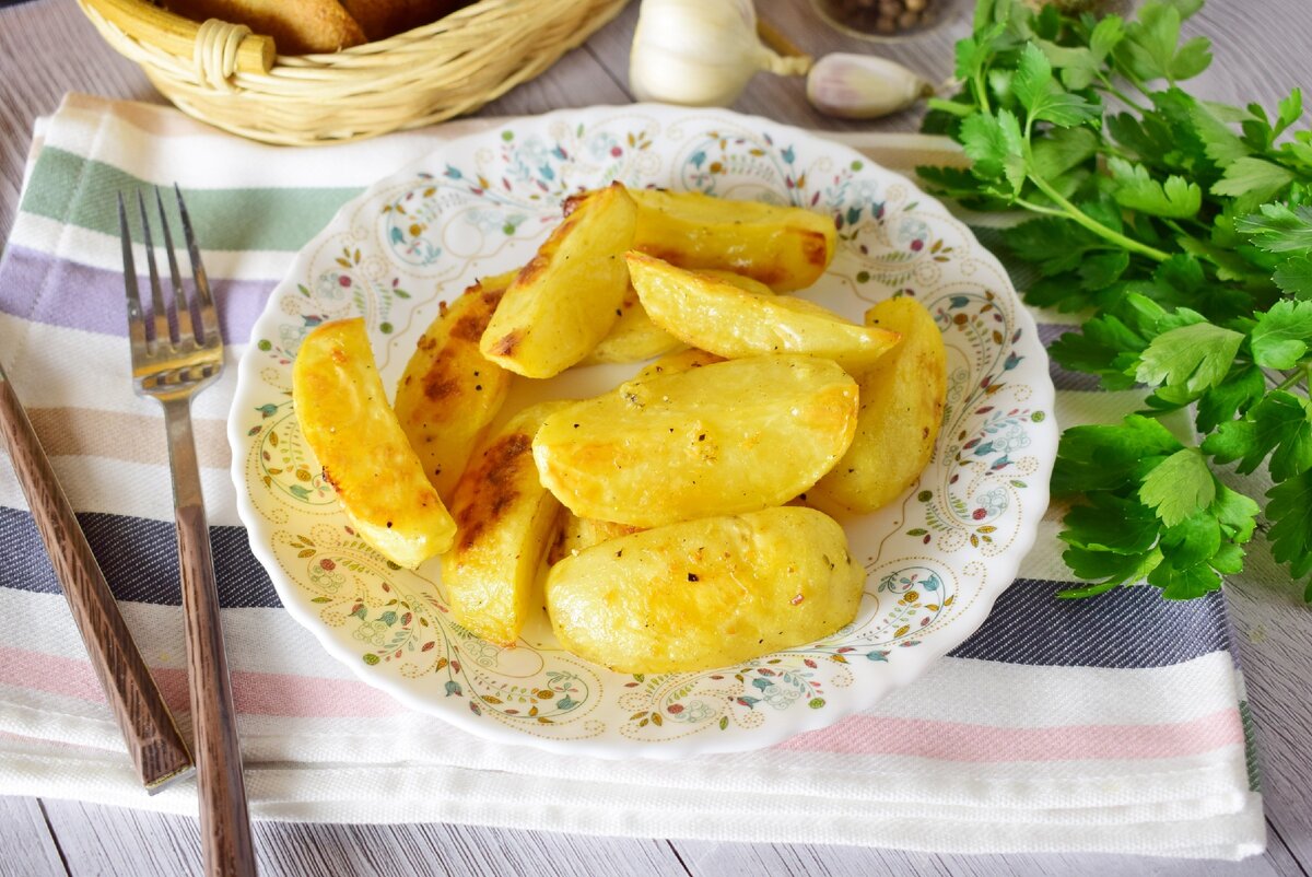 В процессе запекания каждую дольку можно повернуть на бок, чтобы они успели поджариться с разных сторон.