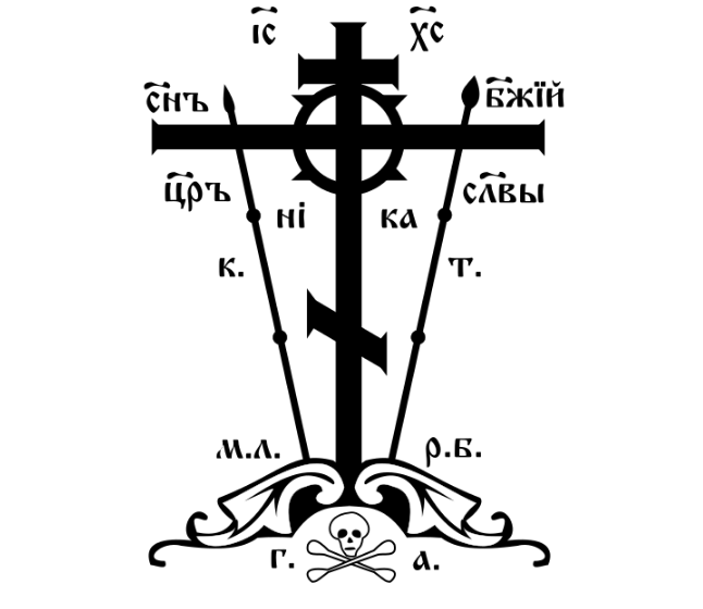 Таким образом изображения черепа и костей под распятием не говорит о какой-либо мистической смерти, не означает магические элементы некромантии. Это указание на предание и символ спасения всего человечества через крестную смерть Спасителя мира.
