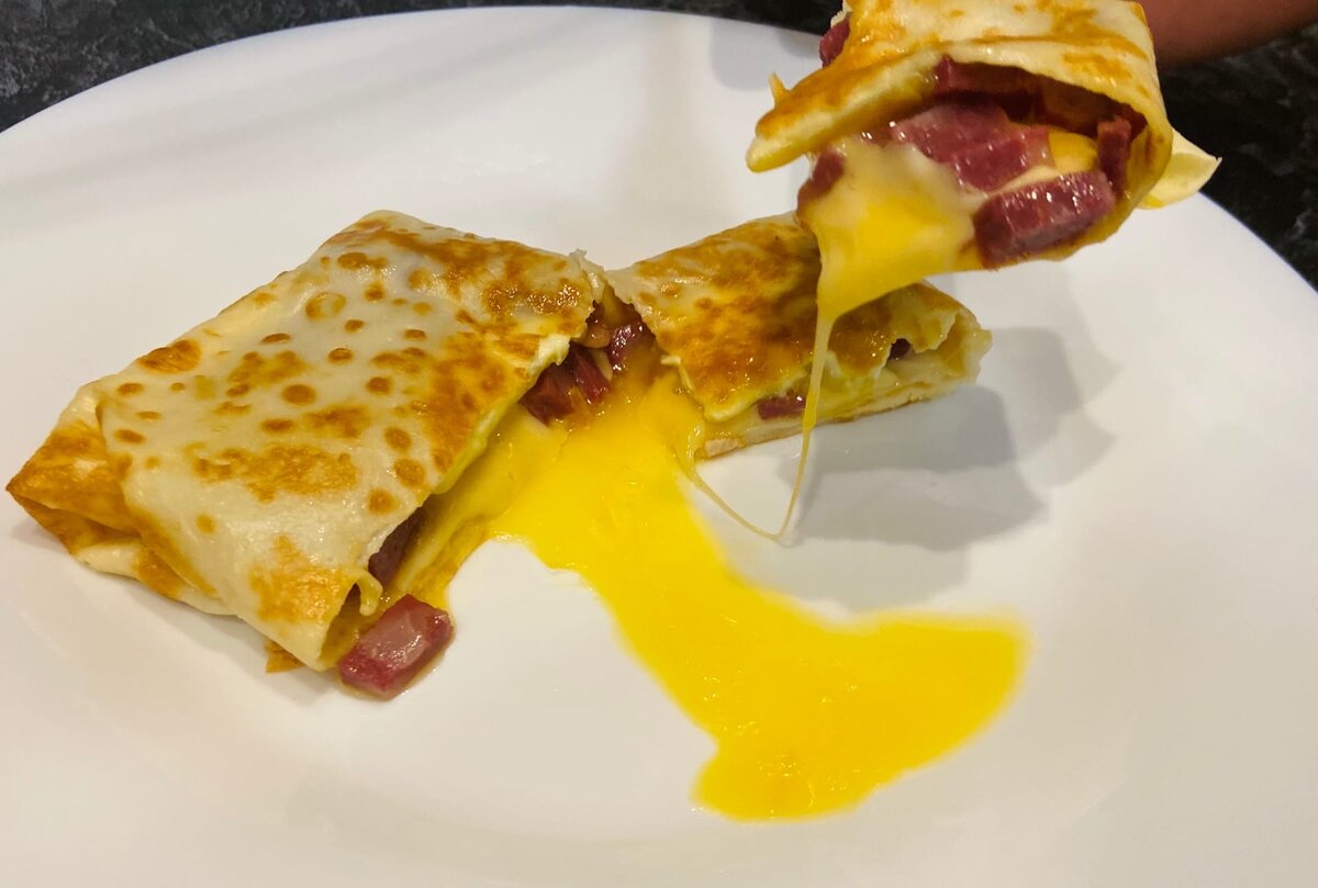 - Колбаса или ветчина кусочек