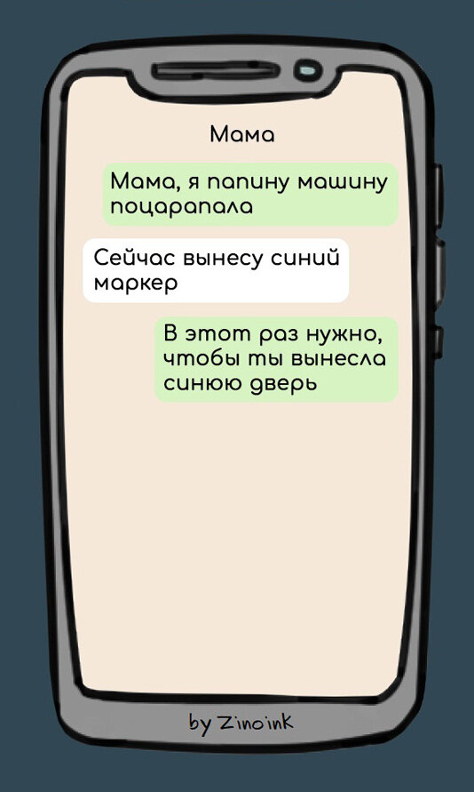 Привет, дорогой друг! Мы медленно, но верно приближаемся к концу октября, а это значит, что до новогоднего настроения остается все меньше и меньше времени. И хоть новогоднее настроение можно создать в любой момент, достаточно включить «Иронию судьбы» и начать резать оливье, мне нравится ощущать, что конец этого «интересного» для нас года совсем близок. Раз уж я напомнил тебе о новом годе, а сам новый год еще не так скоро, моя задача перенести тебя обратно в приподнято-веселое настроение. Я знаю два способа: первый — мандарины, второй — новые смешные #смс переписки , которые я придумал. Не так давно я публиковал смс-переписки с папой, о которых лучше не знать маме (да да, их я тоже придумал сам), и вы обратили мое внимание на то, что #мама тоже обладает отличным чувством юмора (ссылку на прошлую статью я прикреплю в конце этой). Так вот сегодня придуманные мной смешные смс-сообщения маме, которые лучше не показывать папе. Начнем с классики жанра. Как правило, папам не особо нравятся па