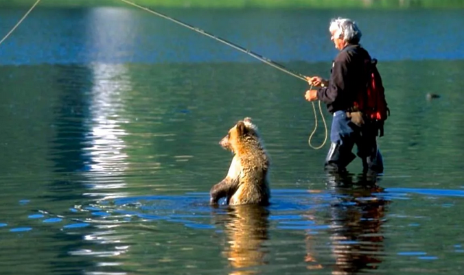 Самый главный совет - не нужно резко двигаться. Никаких резких движений. Плавные, уверенные! Потому что если начать резко двигаться, это будет для мишки означать - атаку. Он не думая кинется! А так, будете стоять ровно, акуратно двигаясь - он даже не подумает кидаться.