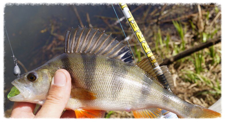 Первое, о чем я подумал, держа тогда это удилище в руках- «зачем мне прислали эту вермишелину»! Казался таким неудобным скелетный катушкодержатель от Фуджи, в то же время отметил добротные кольца на бланке, изящество дизайна, хоть на стену вешай, для красоты. Но вот первая рыбалка, ранняя весна, Озеро Петровское, проводка ступенькой 4 граммовой пули, со съедобной резиной на офсете и первые поклевки нового сезона. Словно ток по проводам, они передавались в ладонь, учащая пульс, подсечка… и красавец окунь в моих руках: