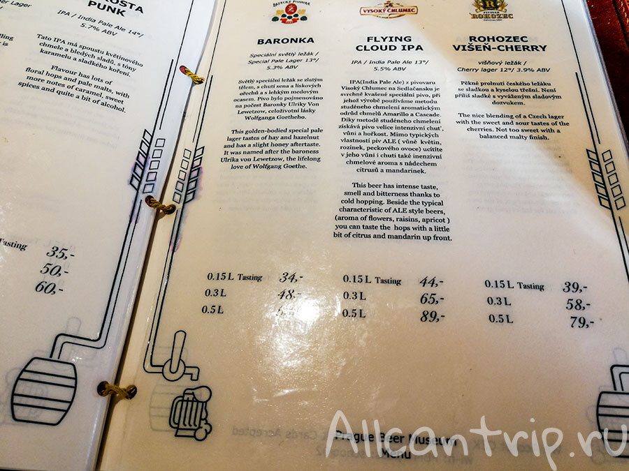 Первый музей, которые расположен недалеко от набережной, гораздо более популярен. Его хозяин – американец, раньше он занимался калифорнийскими винами, но после переезда в Прагу полюбил местное пиво. Сейчас в этом пабе можно познакомиться более чем с 30 разными сортами пива. Если хотите посидеть за столиком, то лучше резервировать заранее, пустые места бывают редко.