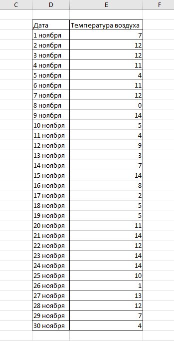 В качестве примера рассмотрим показатели температуры в ноябре: