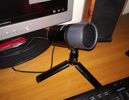 Опыта — почти что ноль, подходящее помещение — отсутствует. Из оборудования неплохой USB микрофон, с натянутым на него вместо поп-фильтра носком, ни разу не надёванным, если что…(на фото микрофон без оного). Микрофон выбирал наобум — какой приглянулся по внешнему виду, тот и взял.