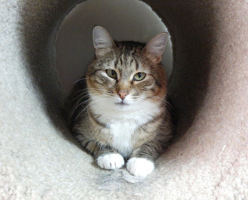 Люси — забавная и милая кошка с лёгким косоглазием, которое придаёт ей особенный шарм. Вообще косоглазикам в приюте везет – это давно замечено и волонтерами, и (с некоторой долей зависти) кошками с прямым взглядом. Наши «косули» в приюте надолго не задерживаются, и даже пугливые, даже грозные на вид, даже пожилые находят хозяев (да еще каких замечательных!). !). А вот наша Люси уже четыре года ждет в приюте своего человека. Но никому не завидует, не отчаивается, не срывает ни на ком обиду. Твердо верит – и ее заметят и примут в дом. Люси – дама в расцвете лет, полная сил, но уже без хулиганства, готовая любить, утешать, играть, слушаться. Нечего и говорить, что когтеточка и лоток освоены ею давно и твердо. А еще эта кошка просто красивая, очень чистенькая, аккуратная. Она слегка недоверчива, но любопытна — пытается разобраться, что за зверь такой этот человек, и чего от него ждать. Немного внимания, любви и домашняя обстановка (и, может быть, креветки) — вот что крайне необходимо Люси.