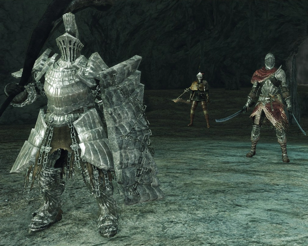 Типичная ганг группа,состоящая из танк,дамагера и лучника.Поэтому надо быть предельно осторожным и не делать ошибок.Порядок убийства разный,но Варга почти всегда убивают последним,потому что он может до 10 раз использовать эстус и бить его первым или вторым глупая затея.Бой заключается в том,чтобы скинуть Варга и разорительницу в воду,быстро оттуда выбежать и нанести серию ударов Цераху.Однако тот имеет эсток(или рапиру,не всматривался) и будет всячески тянуть время.Когда двойня приближается уворачиваемся от атак и идём по следующему кругу,пока не убьём Цераха.После этого надо вышибать разорительницу и вот тут проблема!Она постоянно находится с Варгом,по скрипту они не отойдут друг от друга далеко.Лучше перейти на дальний бой или взять быстрое оружие,быстро наносить ей удары и отбегать,иначе рискуем получить по голове зубом дракона,который можно парировать(парадокс).Когда этот сложный этап пройден,можно уже спокойно добивать оставшегося Варга.