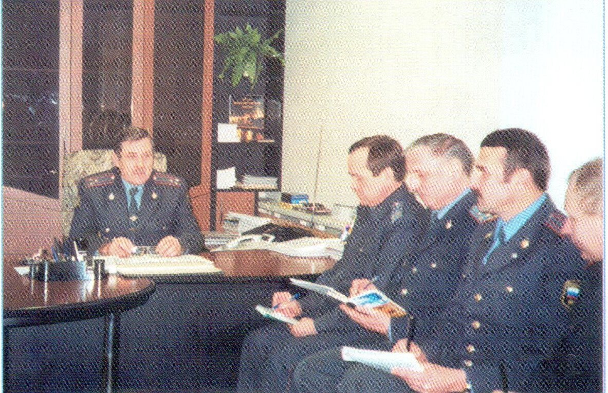 На фото постановка служебных задач начальником управления вневедомственной охраны Росгвардии по Пензенской области руководителям подразделений.