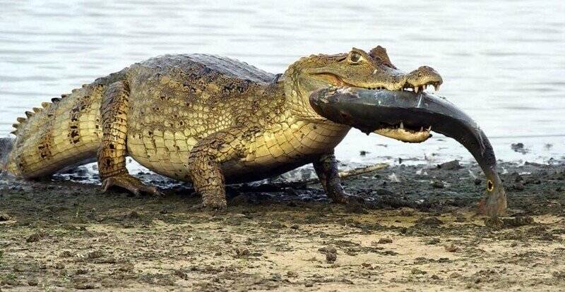 Скорость крокодила на суше и воде.