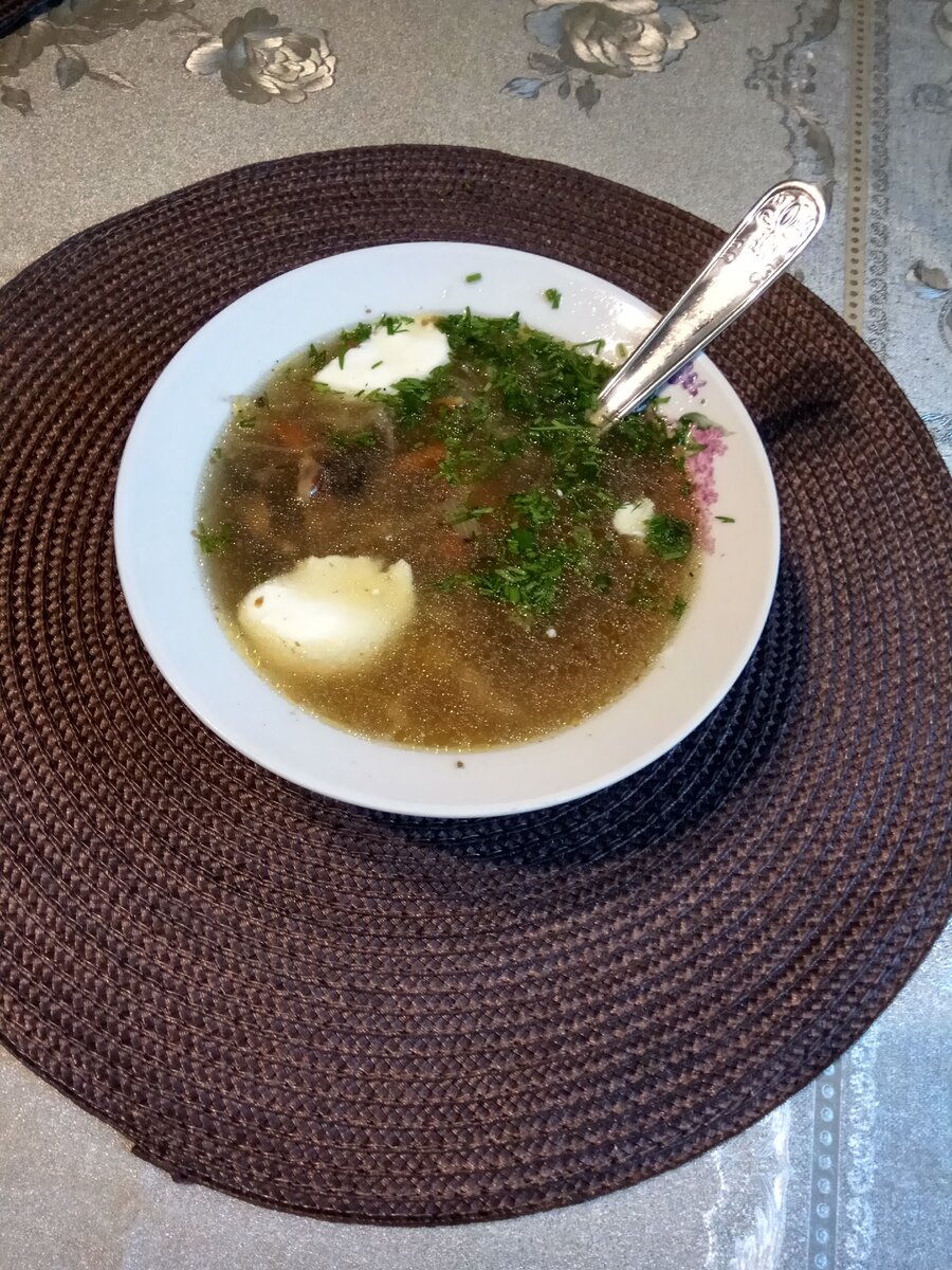Щи из квашеной капусты с сушеными грибами на мясном бульоне — рецепт от моей супруги.