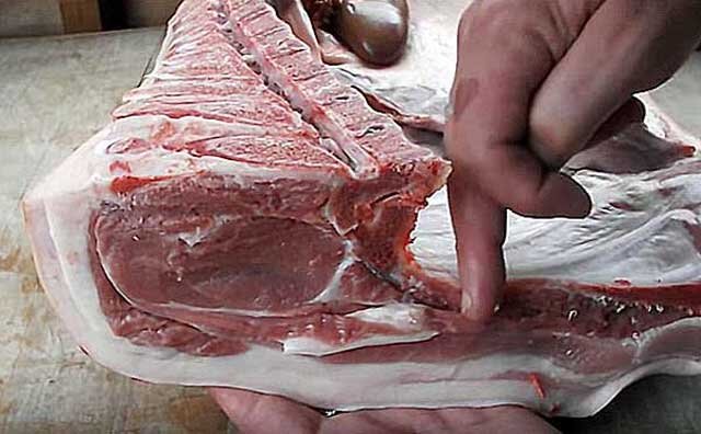 Мякоть между ребрами и ткань у позвоночника можно совсем не отделять. Так получают продукт для приготовления свиных ребер в различных вариантах и полуфабрикатов. Но если нужно, кости полностью очищают от мяса.